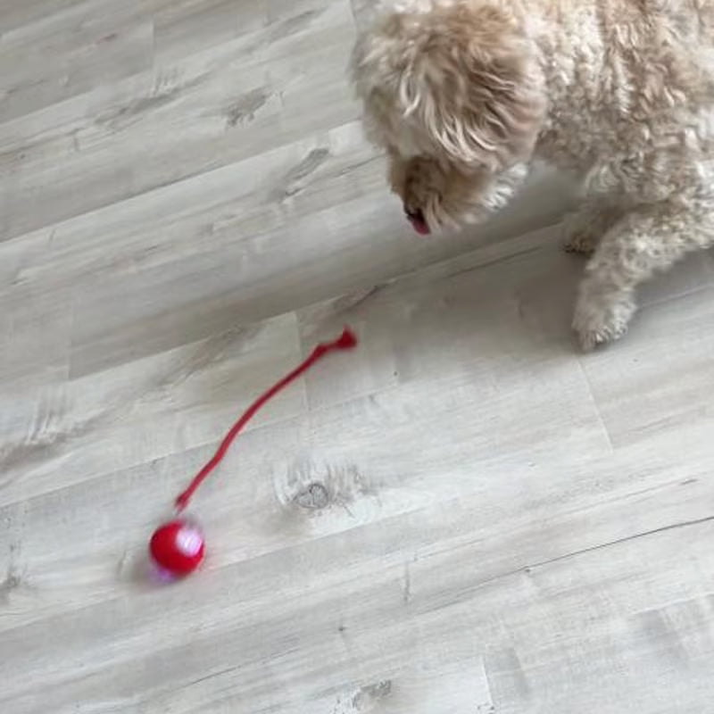 Enkel men väldigt uppskattad leksak. Både hund och katt dras till den röda bollen. Pluspoäng för att den fungerar för båda djuren.